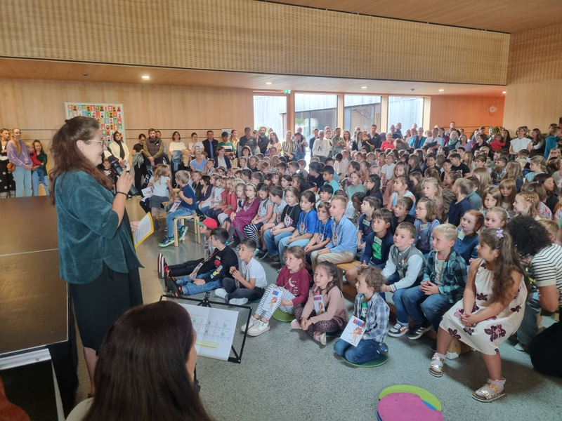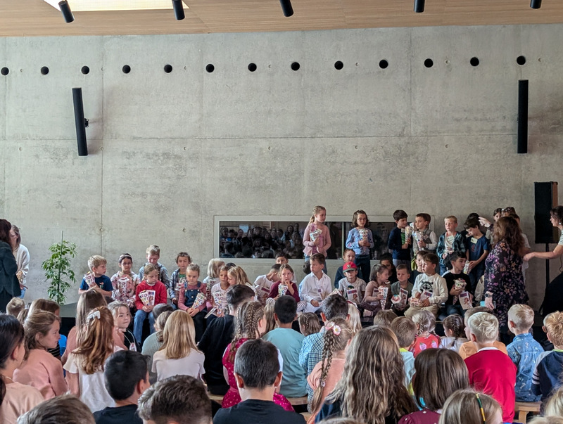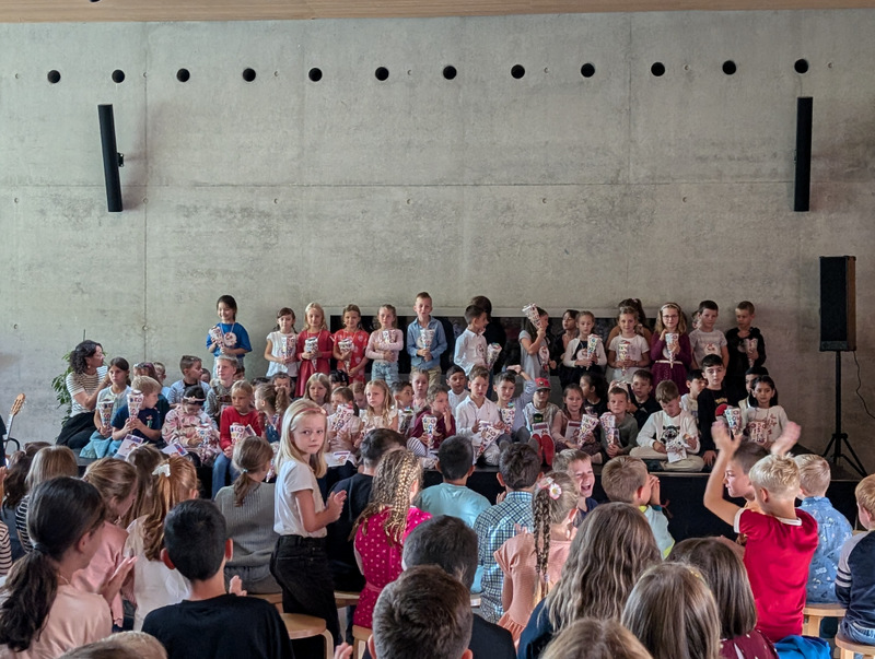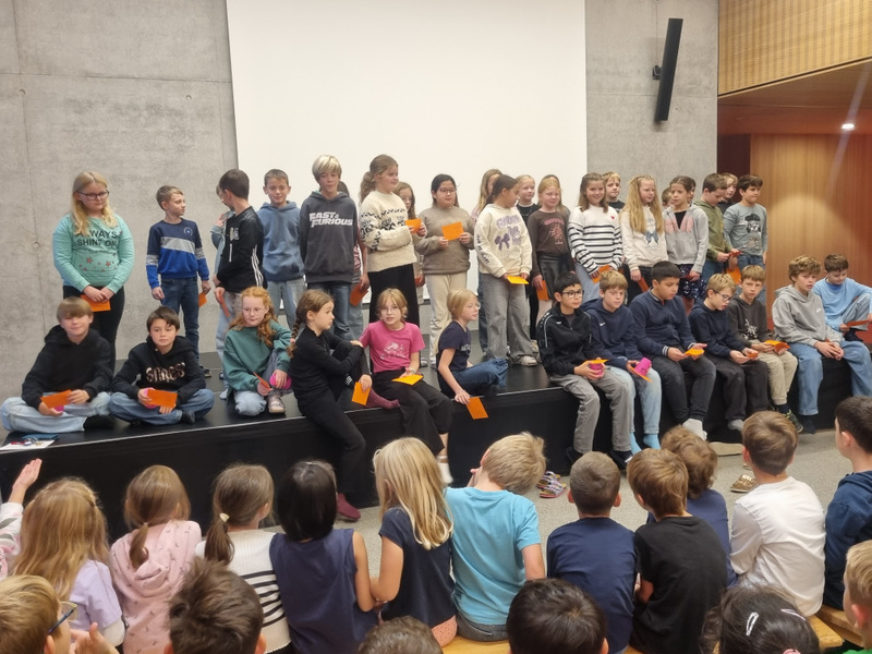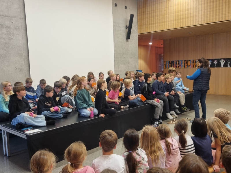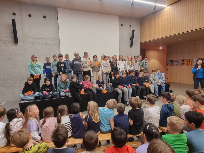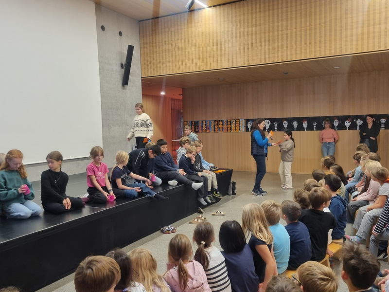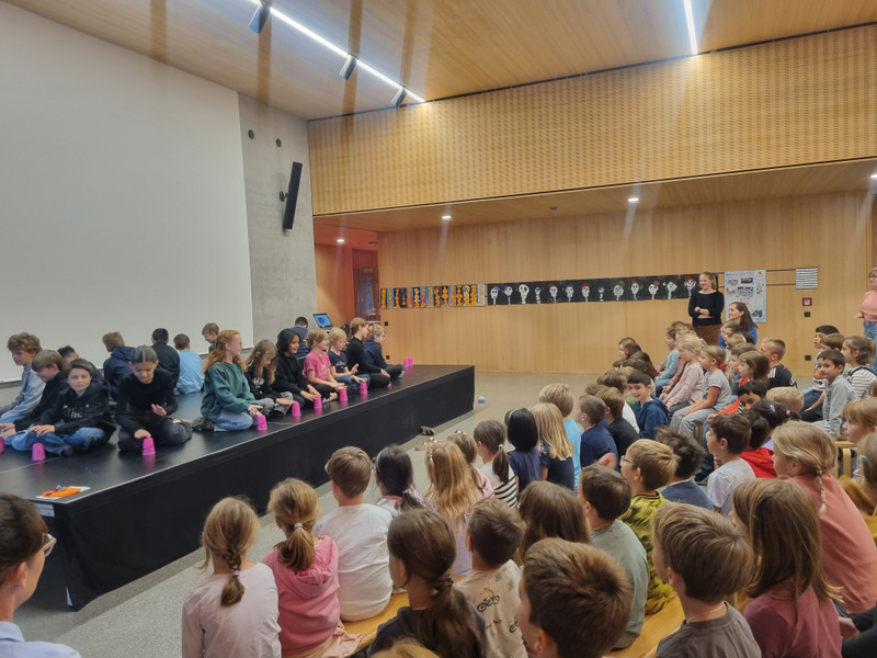Am Mittwoch, den 22. Oktober 2025, fand unser Aula-Treffen statt. Die Klasse 4b eröffnete die Veranstaltung mit einer musikalischen Darbietung.