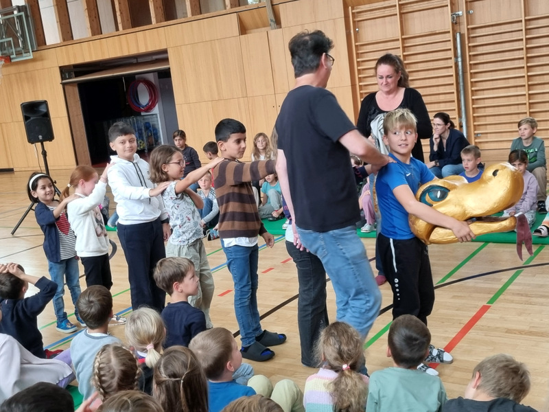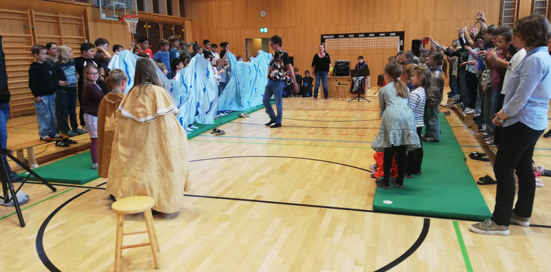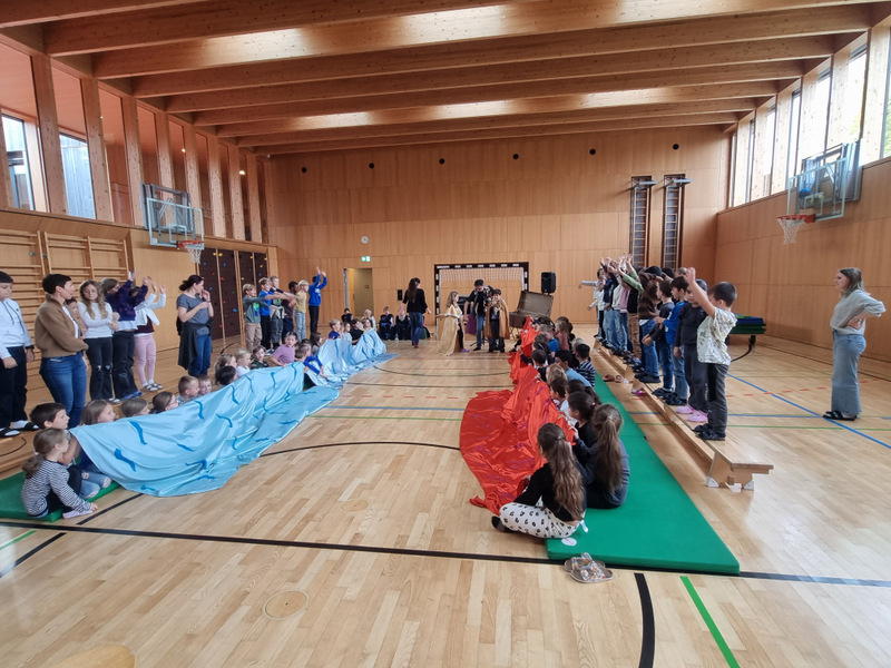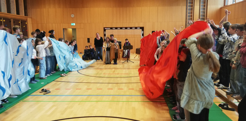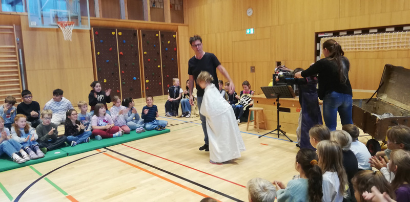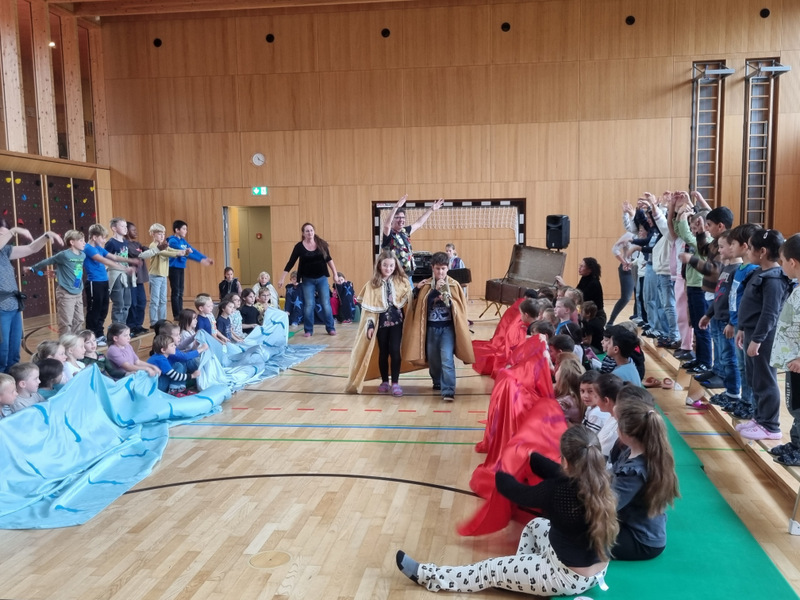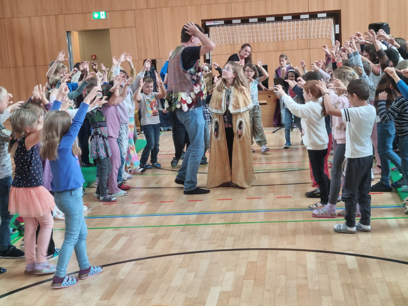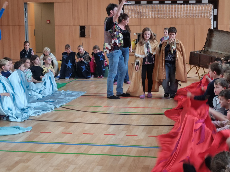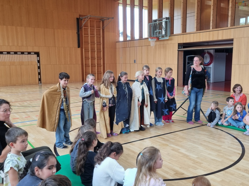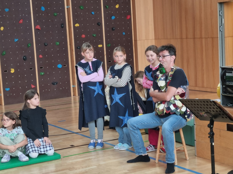 Mit viel Begeisterung und Freude waren die Kinder dabei, als aus Zuhörerinnen und Zuhörern plötzlich kleine Sängerinnen, Schauspieler und Darsteller wurden. Am Ende stand eine lebendige, kindgerechte Aufführung, die allen Beteiligten noch lange in Erinnerung bleiben wird