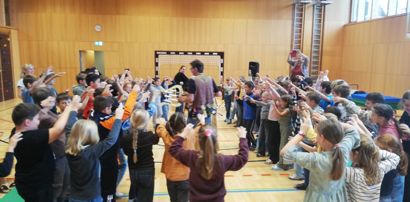 Am Dienstag, den 30. September, war die Kinderoper Papageno bei uns zu Gast. Gemeinsam mit den Schülerinnen und Schülern gestalteten die Sängerin und der Sänger einen Opernworkshop zur berühmten Mozart-Oper “Die Zauberflöte”.