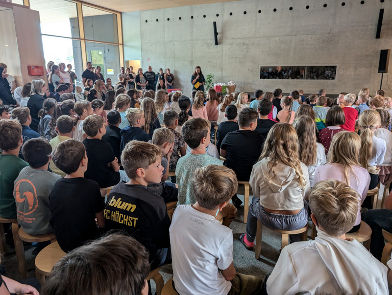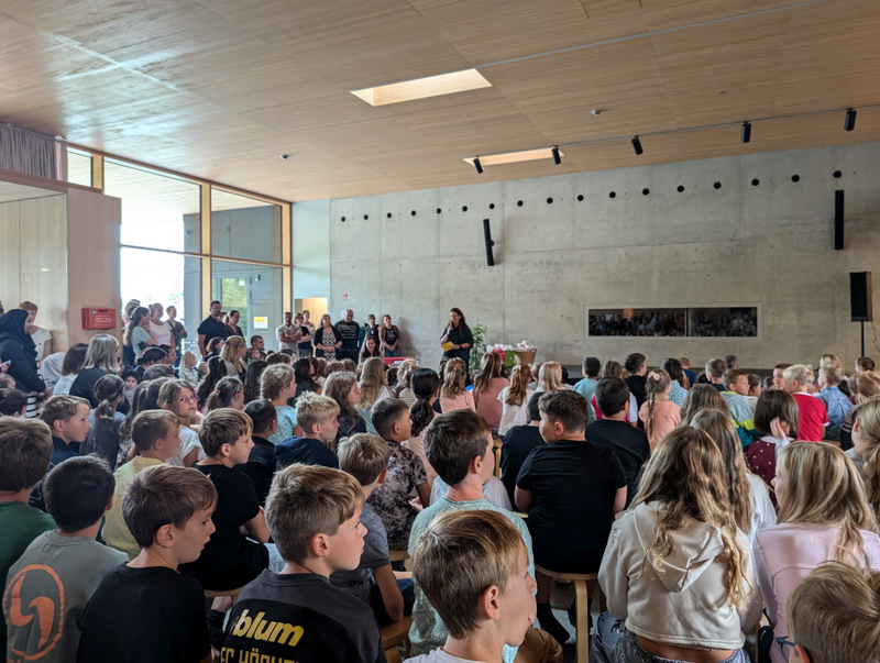 Um 9.00 Uhr versammelten sich alle Schüler*innen, Lehrpersonen und Gäste in der Aula, um gemeinsam den ersten Schultag zu feiern.