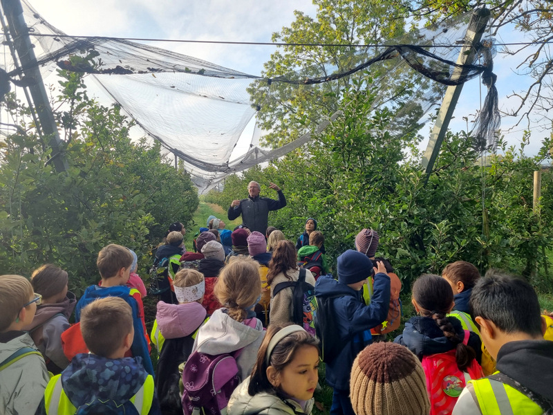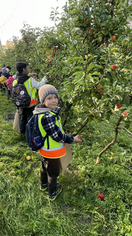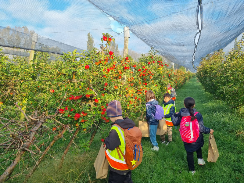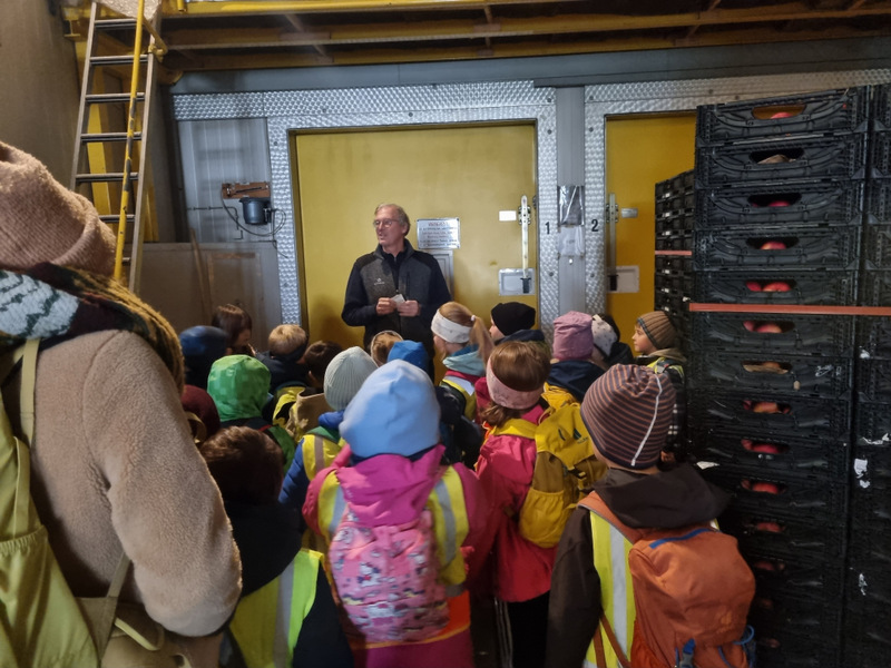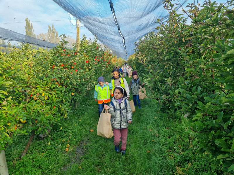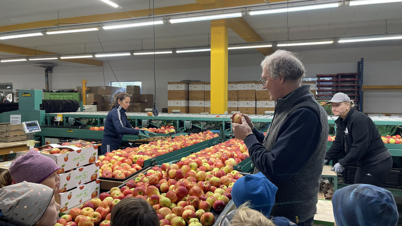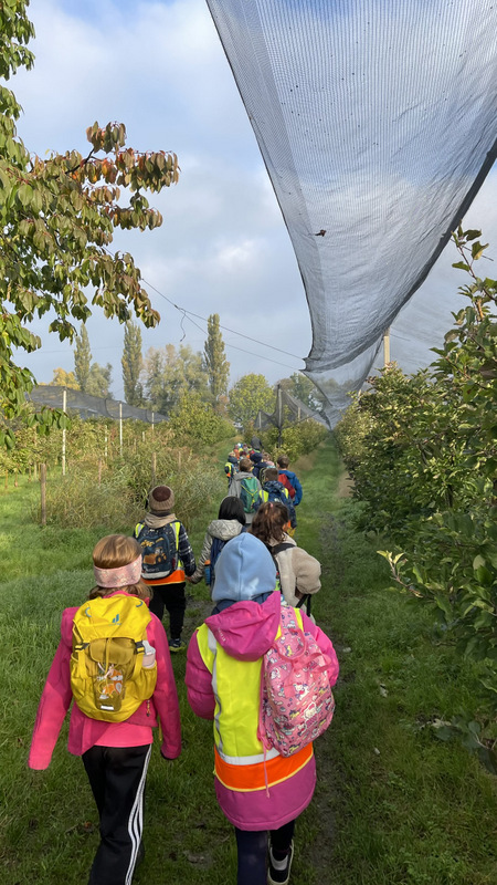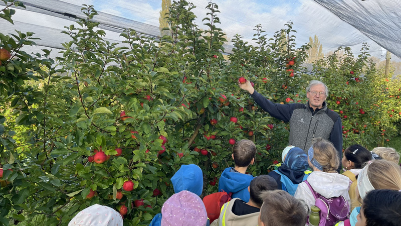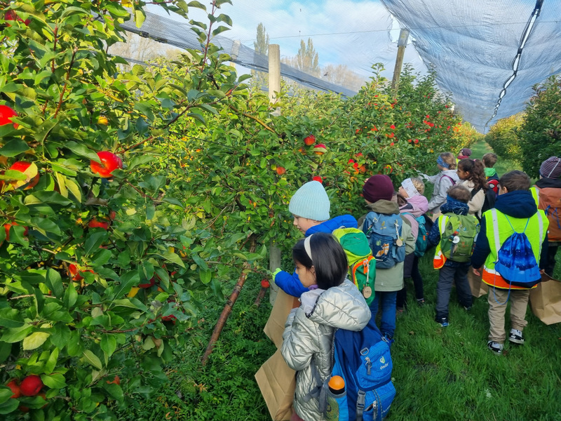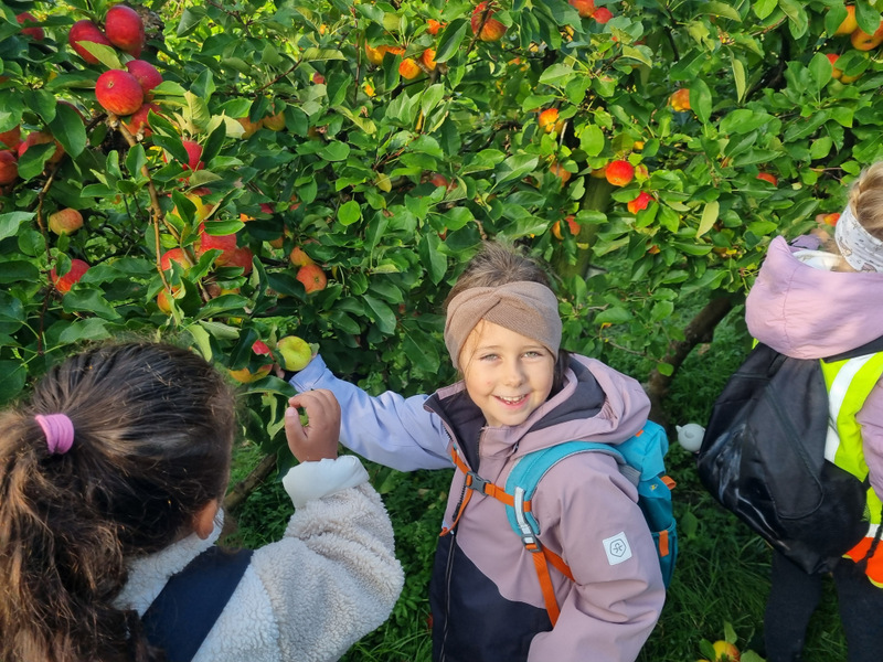 Am 15. Oktober 2025 machten sich die Klassen 1a und 1b auf den Weg zum Wiesenhof. Dort erwartete uns Herr Jens Blum. Er begrüßte uns herzlich und führte uns über seinen Apfelhof. Wie durften sogar selbst Äpfel pflücken – das war ein tolles Erlebnis! Ein großes Dankeschön an Herrn Blum für die interessante Führung, die Zeit und die leckeren Äpfel, die wir mitnehmen durften. Wir hatten einen schönen, lehrreichen Vormittag auf dem Wiesenhof.
