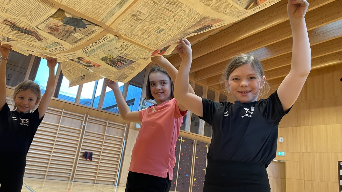 Bei einer Bewegungsbaustelle mit der Flugschaukel, spannenden Materialerfahrungen mit Zeitungspapier und Kleberollen, sowie beim gemeinsamen Bauen einer Murmelbahn aus Heulrohren waren Kreativität, Geschick und Teamgeist gefragt.